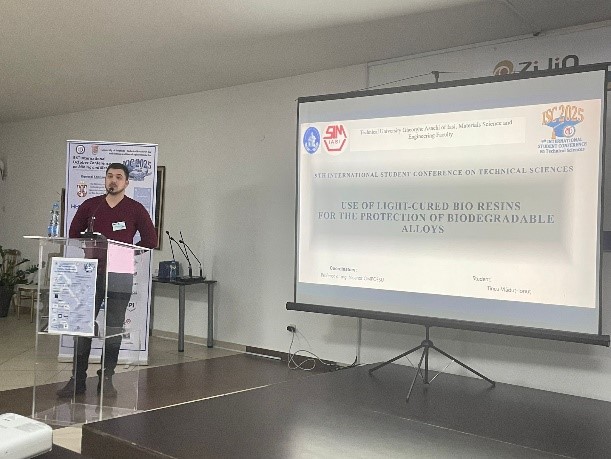 -  Ionuț Vlăduț Tincu (anul 2 masterat) – „Use of Light-Cured Bio Resins for the Protection of Biodegradable Alloys”